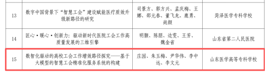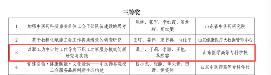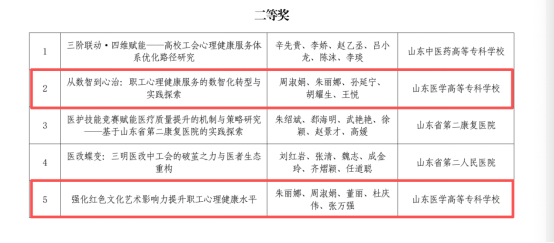 近日,山东省卫生健康委员会直属机关工会委员会公布2025年度工会研究课题评选结果,我校推送的4项课题荣获二等奖2项,三等奖2项。